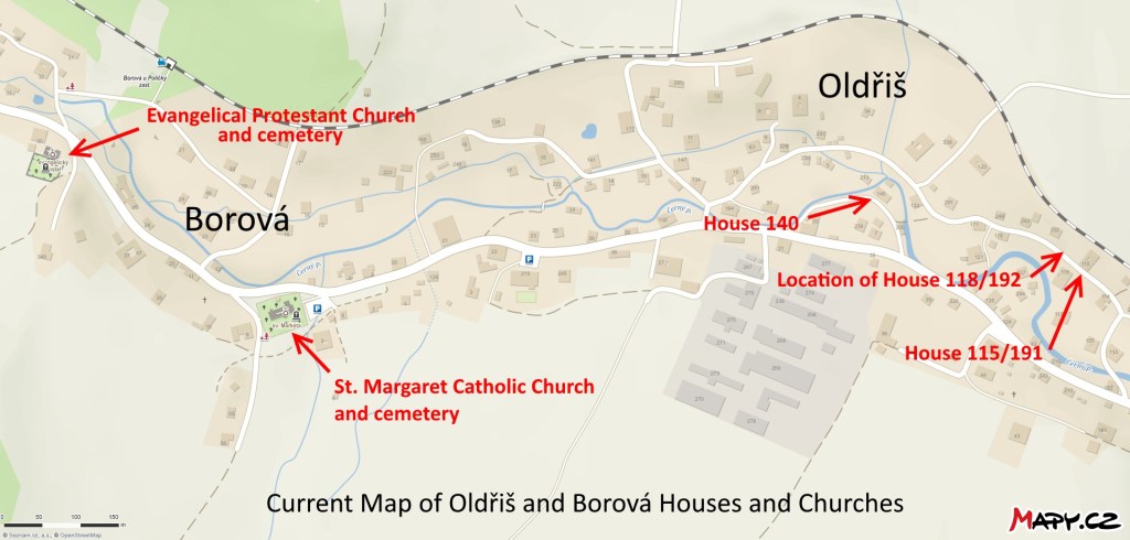 Let’s look at the map again. We’re going to visit Oldřiš houses 140, 191, 118.