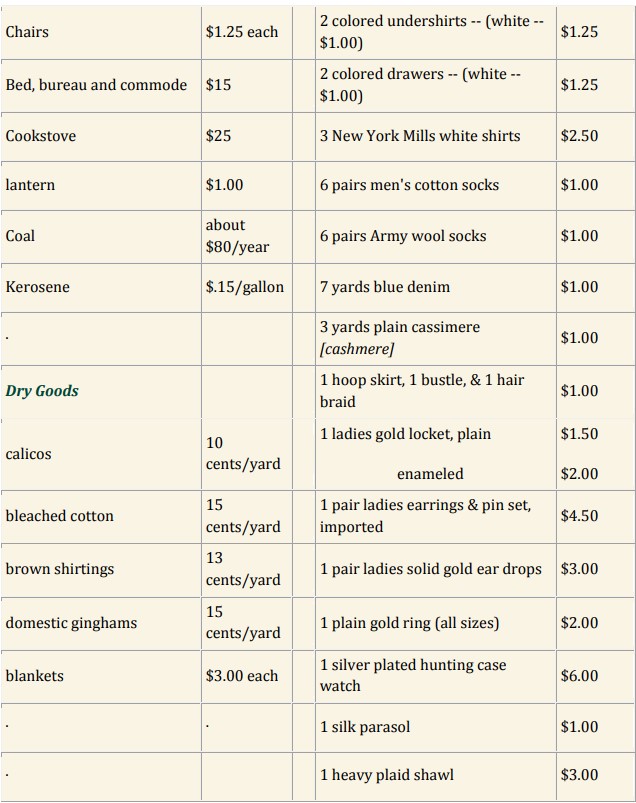 Here are some prices from the first Montgomery Ward catalog in 1872, a one page listing of 162 products:
