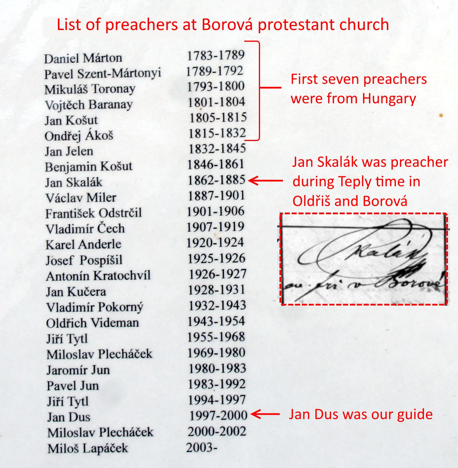 So the newly founded protestant churches imported preachers from Hungary. The first seven preachers at Borová were Hungarian.