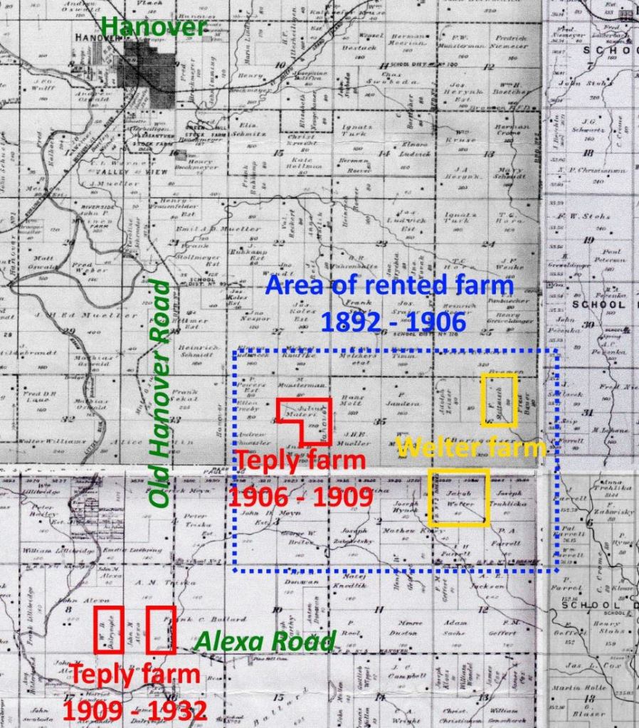 All the Teply boys were born while their parents had a rented farm in southeast Hanover Township. They were neighbors with Anna’s parents, Jacob and Agnes Welter.