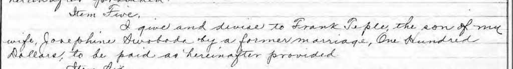 When Joseph Swoboda died in 1904, he acknowledged Frank Teply in his will and left him a bequest.