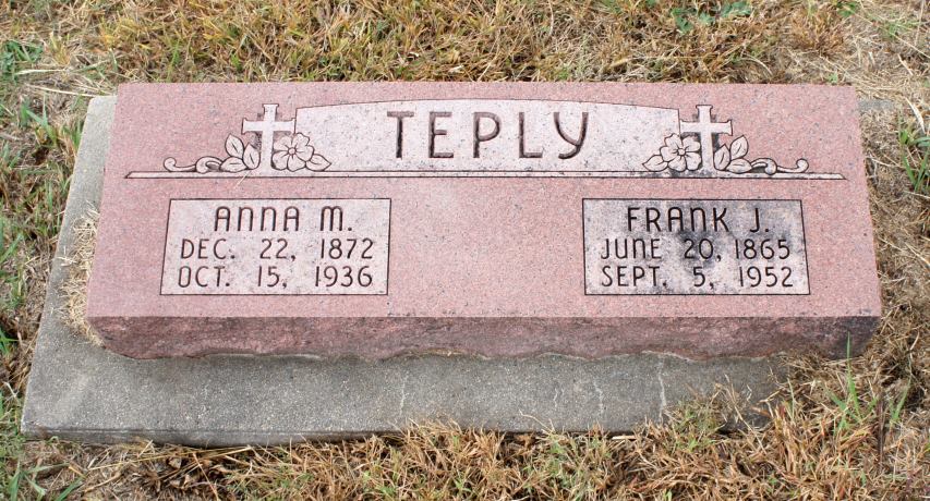 - Marriage License – Frank Teply and Annie Welter – 1892 – Marriage Affadavit and License Record, K – p. 186 – Washington County Kansas Courthouse