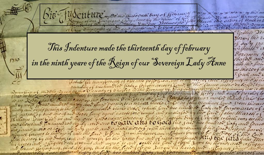 This “regnal year” was also commonly used on legal documents and declarations. Here’s an example on a land deed for Joseph Jervis in 1710.