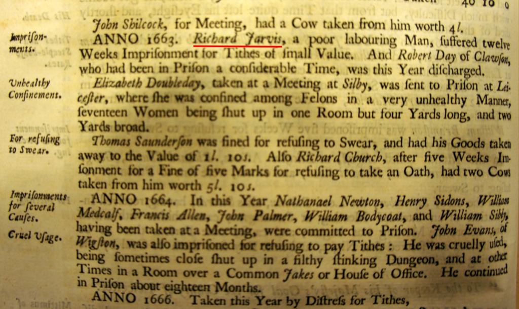 There’s a famous book recording the sufferings of Quakers in England. And it includes some Jarvises.