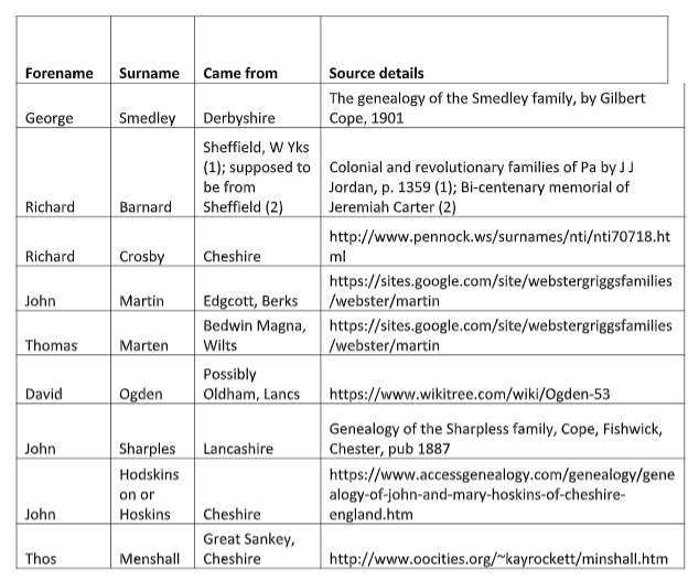 Where possible, Celia analyzed where Elizabeth’s Chester County, Pennsylvania neighbors came from in England.