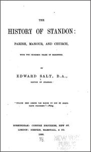 - The History of Standon: Parish, Manour, and Church, With Two Hundred Years of Registers, by Edward Salt, B.A. Rector of Standon, Birmingham: Cornish Brothers, New St., London: Simpkin, Marshall, & Co. 1888