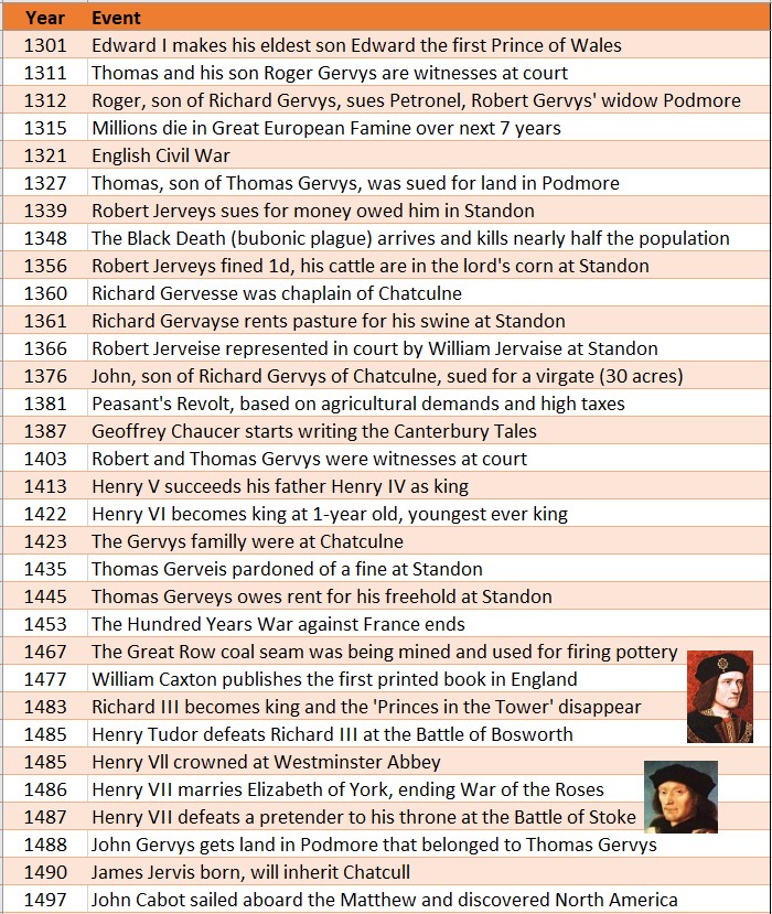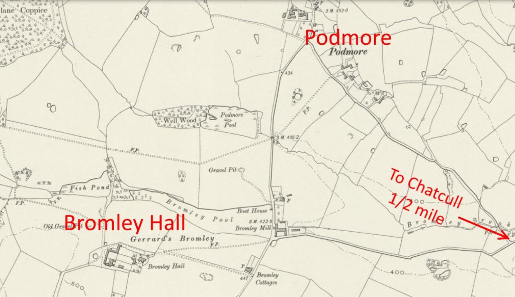 In 1312, Roger, son of Richard Gervys, was in custody of land of other Jervis relatives. The land is in Podmore, a village one mile northwest of Chatcull.