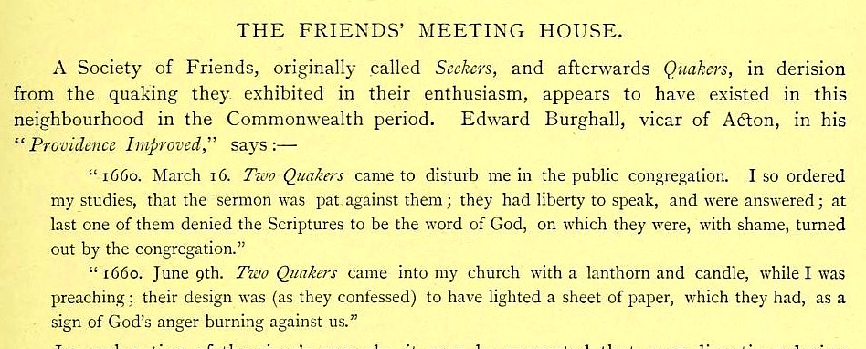 There were Quakers in Nantwich. From the book “A History of the town and parish of Nantwich, or Wich-Malbank, in the county palatine of Chester”.