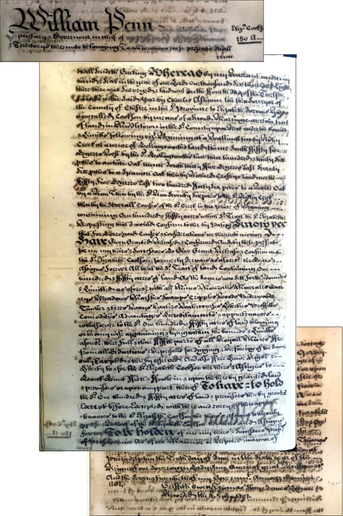 This patent was recorded on July 4, 1707 in Patent Book A4. It’s at the Pennsylvania State Archives.