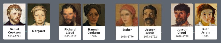 In 1713, Hannah Cookson married Richard Cloud, Joseph Cloud’s brother.