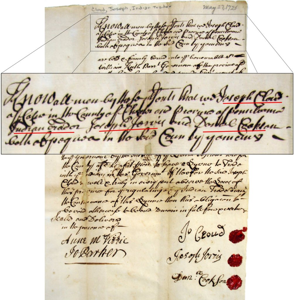 - License – Indian Trader – Joseph Cloud – 1725 – Chester County Archives – West Chester, PA