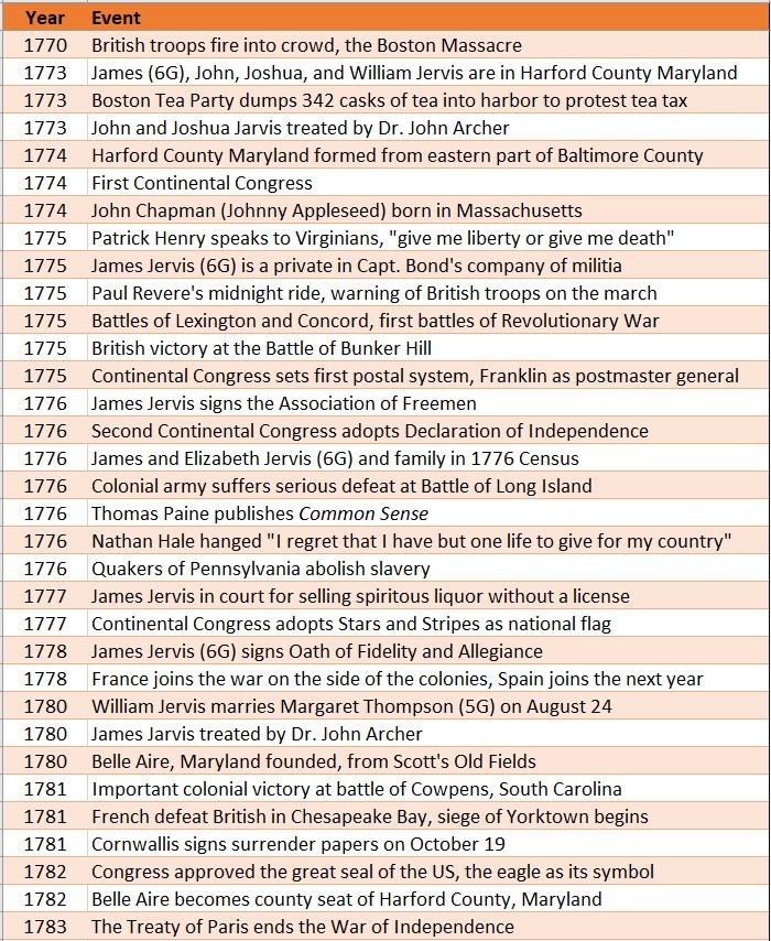 On August 24, 1780, William Jervis (5G) married Margaret Thompson (5G). William was 20, Margaret 18.