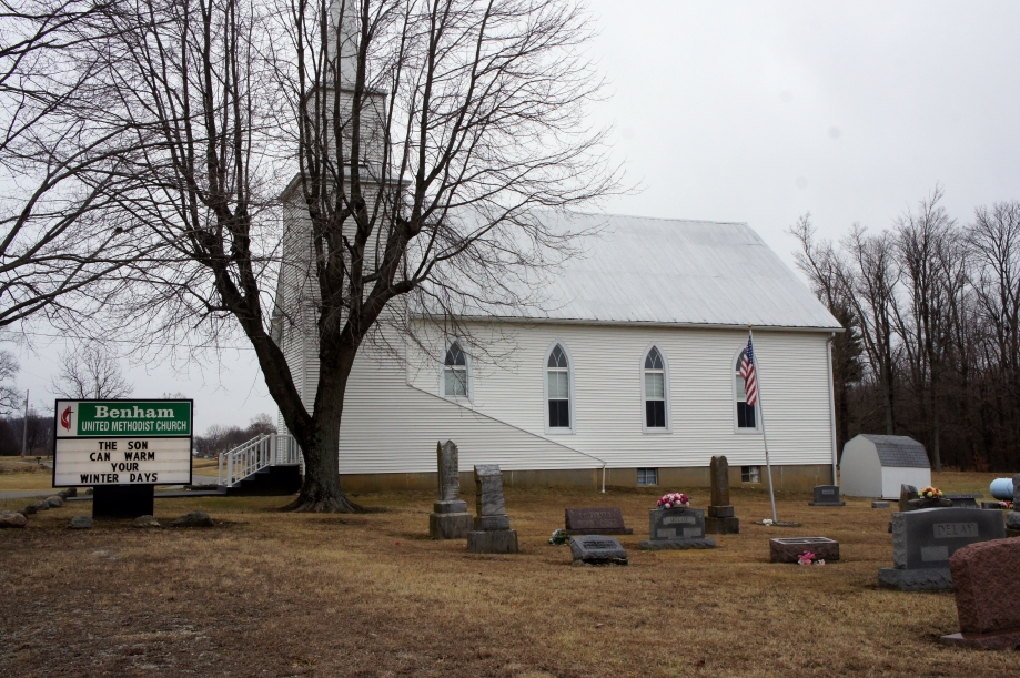 The church was originally a Baptist congregation. The Benham Methodist Episcopal Church acquired the land in the late 1800s. The present-day church building was built in 1899.
