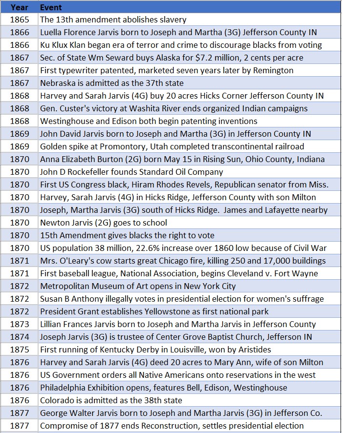 In Indiana, Indianapolis and the northern part of the state entered a period of economic prosperity. Southern Indiana’s economy was diminished as railroads replaced Ohio River commerce. In Jefferson County, where the Jarvises lived, the economy tanked.