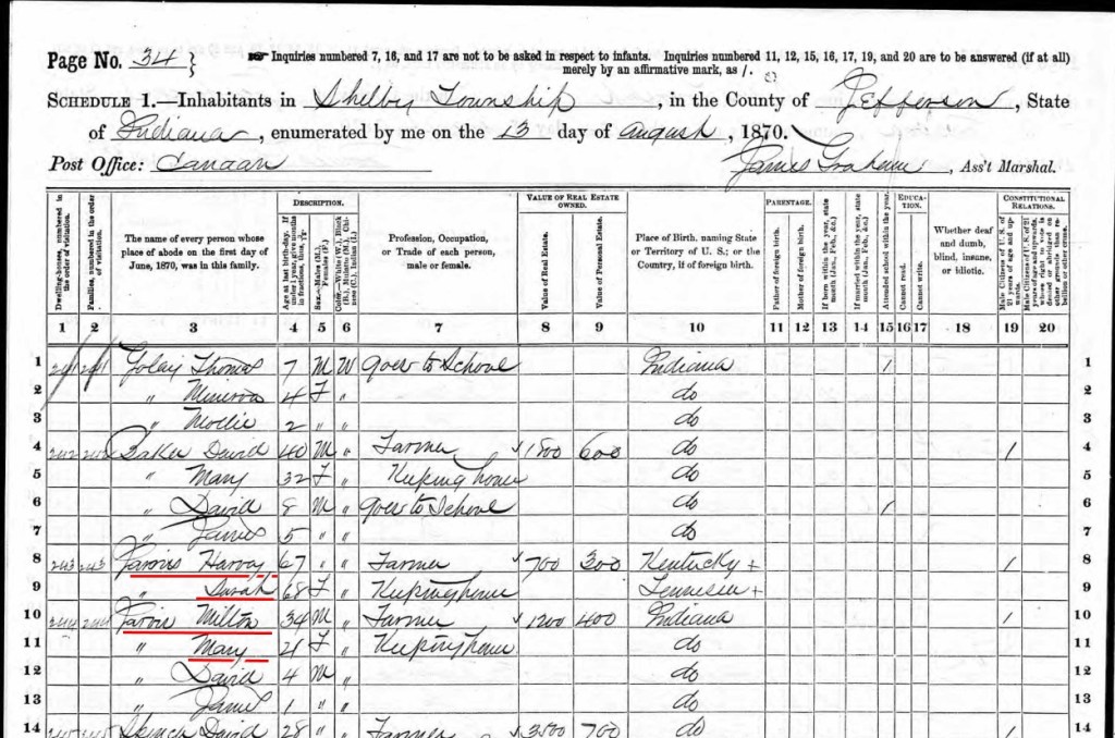 By 1870, Milton and Mary Ann had two children and were living next door to Harvey and Sarah Jarvis on their farm in Jefferson County.
