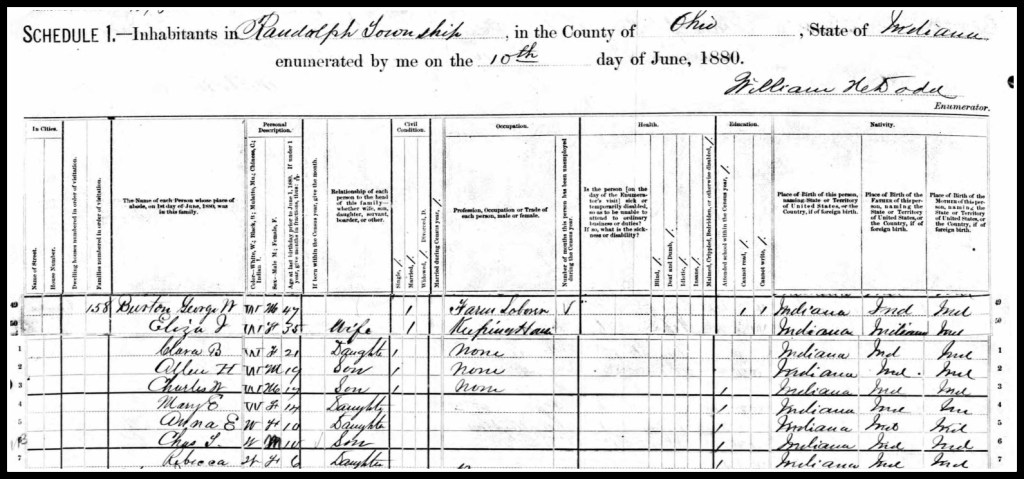 - Census – George and Eliza Burton and family – 1880 – Ancestry.com