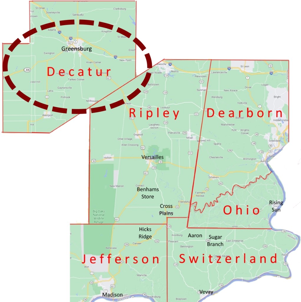 - Map composite – Decatur County and other counties that Jarvis had lived in – Google Maps 2021