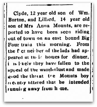 It’s always something. In November 1915, Anna had to deal with son Lillard and nephew Clyde hopping a freight train to run away from home. Oh, those teenagers!