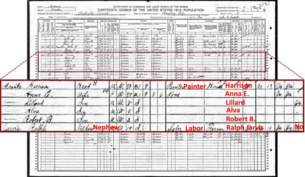 - Census – Anna and Harrison Mounts – 1910 – Ancestry.com