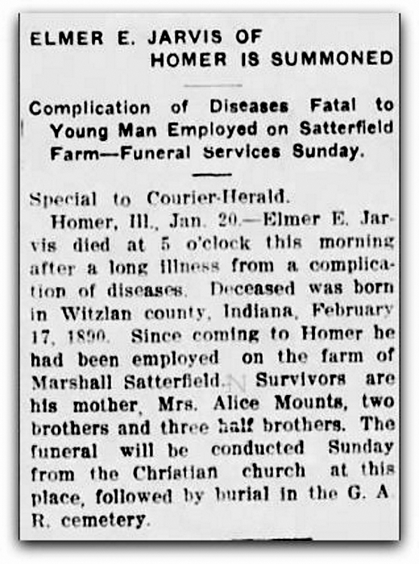 Elmer was Ralph Jarvis’ older brother. His sister Opal had died in 1902. So his only remaining sibling was Tom, two years his elder. Tom was working in Michigan City, Indiana.