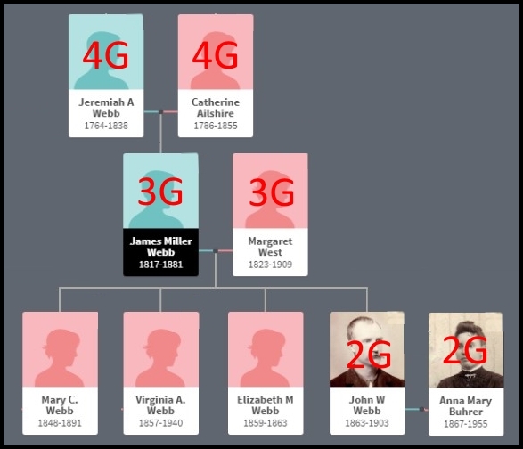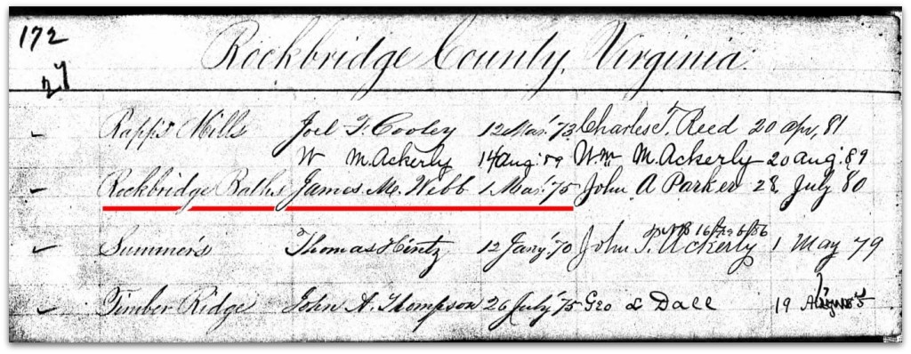 John Wesley Webb (2G) was born Monday, August 3, 1863 in Rockbridge Baths, Virginia. His parents were James Miller Webb and Margaret West Webb.