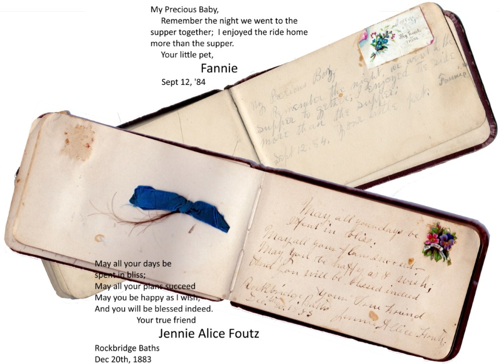 In the pages above, Nettie McCurdy and Jennie Foutz were neighbors. The Foutz family operated the mill in Rockbridge Baths.