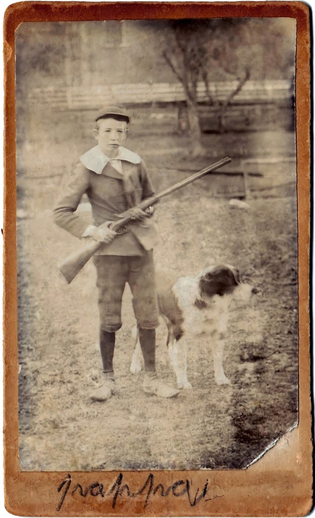 John Webb must have spent lots of time in the hills and valleys around Rockridge Baths. Here are a couple great photos of John and his dog and his rifle.