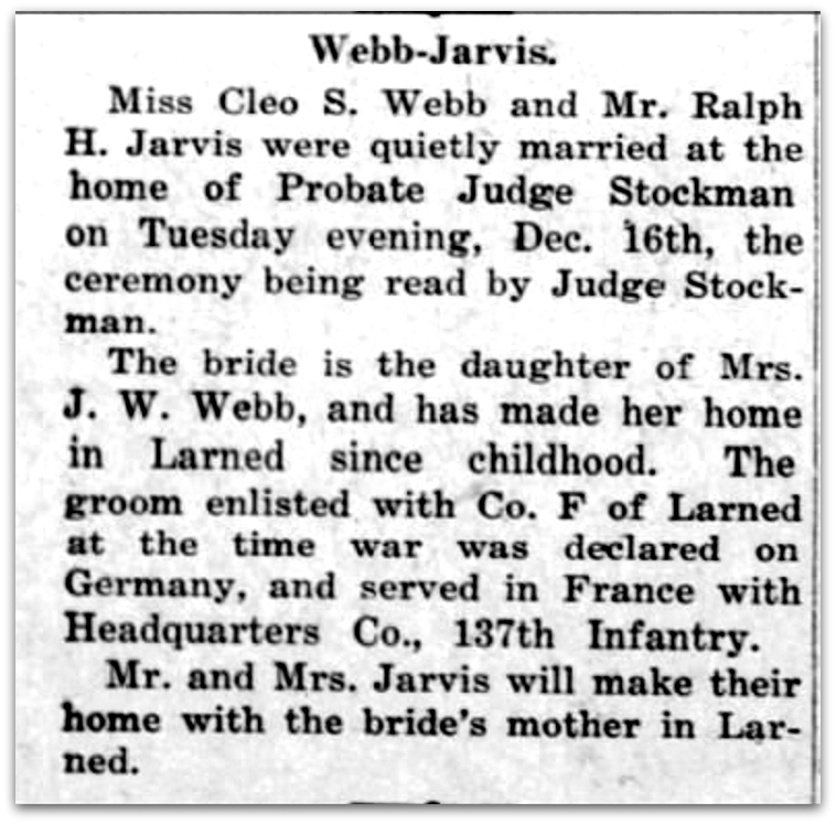 “Mr. and Mrs. Jarvis will make their home with the bride’s mother in Larned.”