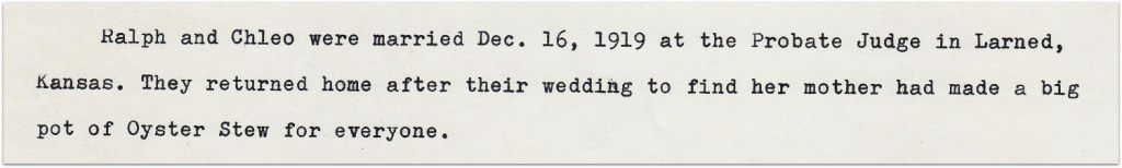 Chleo and Ralph moved in with Anna Webb in the Rock House. There may have been one of Anna’s nieces living with her while going to high school in Larned, but otherwise only Anna lived there. So there was plenty of room.