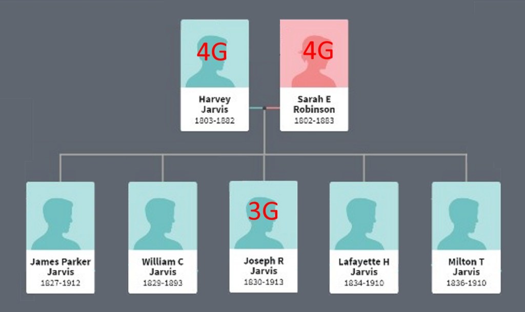 Joseph was the third son of Harvey and Sarah Jarvis, born in 1830 in Ripley County, Indiana.