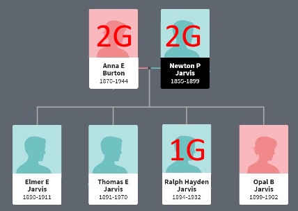 Anna’s parents were George and Eliza Burton (3G). They had lived in Rising Sun. That’s where Anna met Newton. They later moved to Greensburg. George died in 1897 at age 62. Eliza Burton was still living in 1920 at the end of this series of stories.