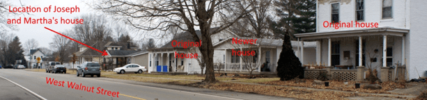 Joseph and Martha had moved around, trying both farming and mason work. After the war, the economy of southern Indiana suffered. They moved to Ohio County, and finally to Rising Sun, Indiana. In Rising Sun, Joseph worked as a mason.