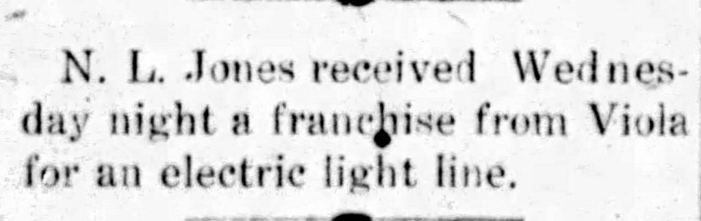 A month later, Viola, Kansas gave Jones a franchise to provide electricity