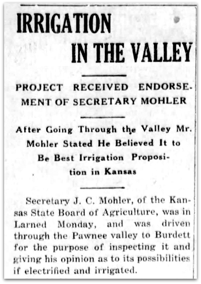 He invited J.H. Mohler, the Kansas Agriculture Secretary, for tours and speeches. Mohler gave his hearty endorsement.