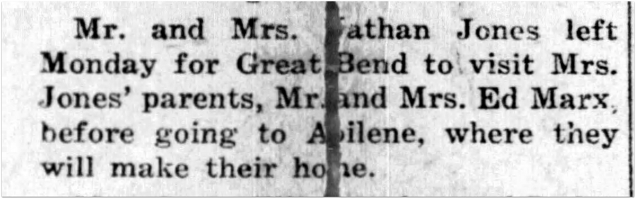 In January 1922, Nathan Jones moved his family from Larned to Abilene to work for C.L. Brown.