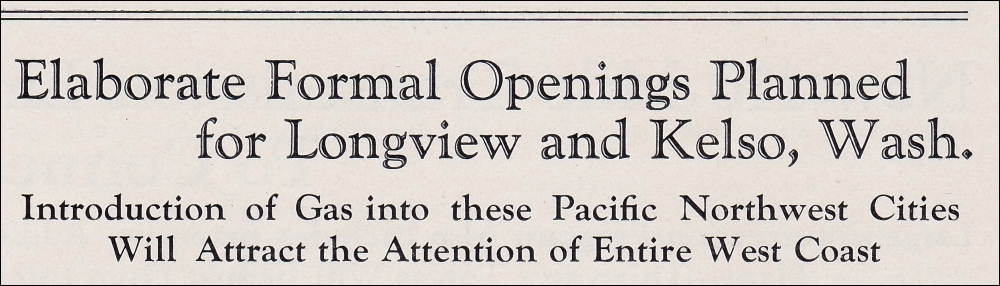 Here’s the story of another big deal in 1930. In October, a celebration was planned for the grand opening of the gas system in the city of Longview, Washington.