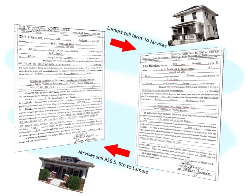 On December 11, 1930, Ralph and Chleo Jarvis bought the farm from H.B. and Clara Lamer. On the same day, the Lamers bought the house at 955 South 9th Street from the Jarvises. The Jarvises had to assume a $5,000 mortgage on the farm as part of the deal.