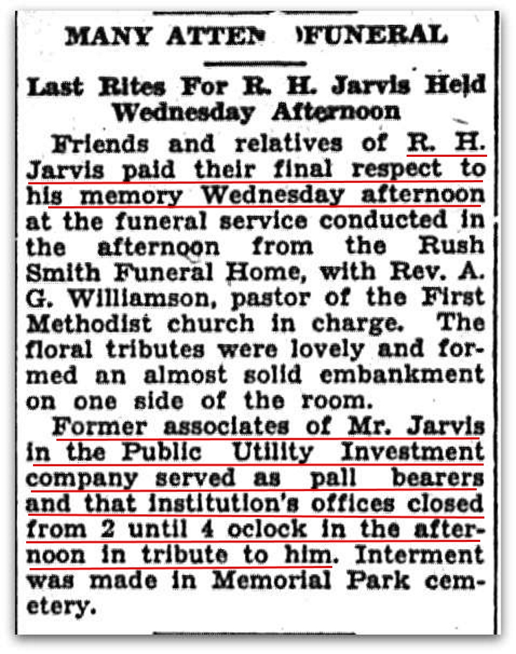Ralph Hayden Jarvis died on Monday, February 15, 1932, at 3 pm. He was age 37.