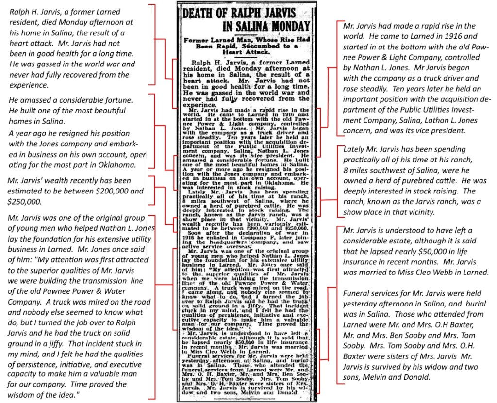 Ralph died too young, but he lived an interesting and meaningful life. Who could have foreseen the events that would lead him from Indiana to Kansas, to participate in WWI, to become a lineman, to meet and marry Chleo Webb, and to work for Nathan Jones.
