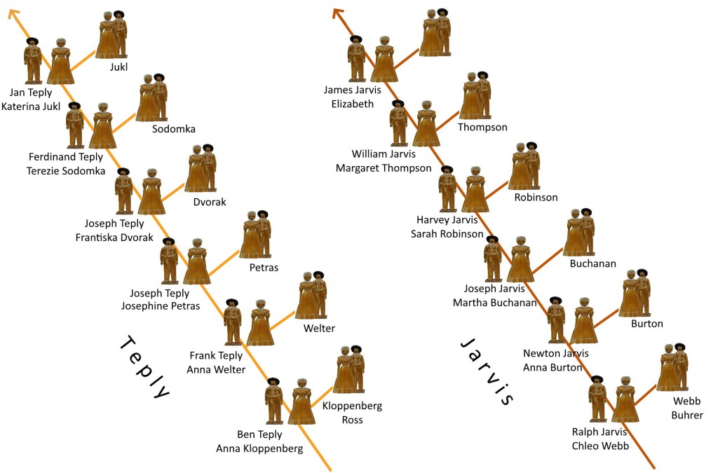 The focus has been on our Jarvis and Teply paternal lines. We’ve written about each generation of Jarvis and Teply male ancestors since the 1600s.