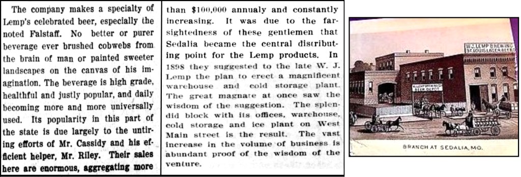 - Image – Lemp distribution warehouse in Sedalia – Show Me The History – Johnson County and West Central Missouri – https://1973whsreunion.blogspot.com/2014/04/sedalia-missouri-history-photos-pettis.html