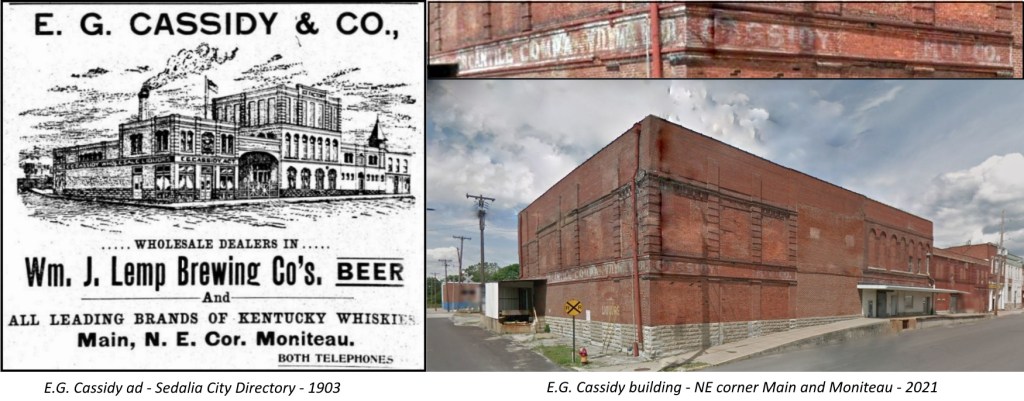 - Image – Ad for E.G. Cassidy – Sedalia, Missouri, City Directory, 1903 – https://www.ancestry.com/imageviewer/collections/2469/images/11439896?ssrc=&backlabel=Return