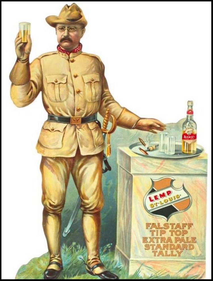 - Image – Teddy Roosevelt ad for Falstaff – Antique Advertising – https://antiqueadvertising.com/free-antique-price-guide/antique-signs/falstaff-beer-teddy-roosevelt-sign/