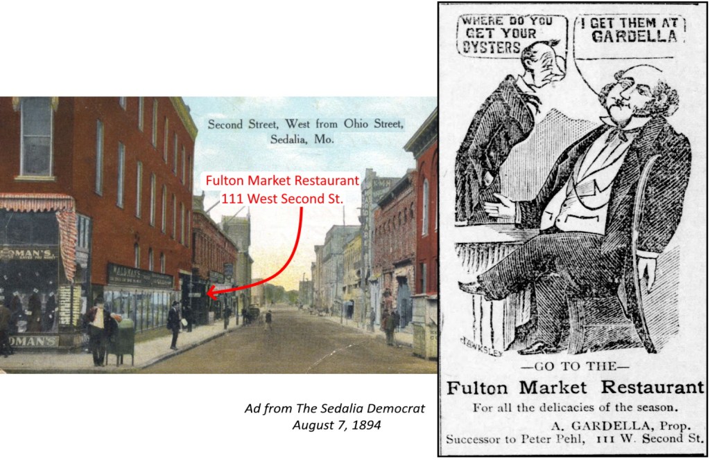 In 1894, Gardellas took over Fulton Market Restaurant and Oyster Bar. You could get fresh oysters on the half shell in Sedalia, Missouri.