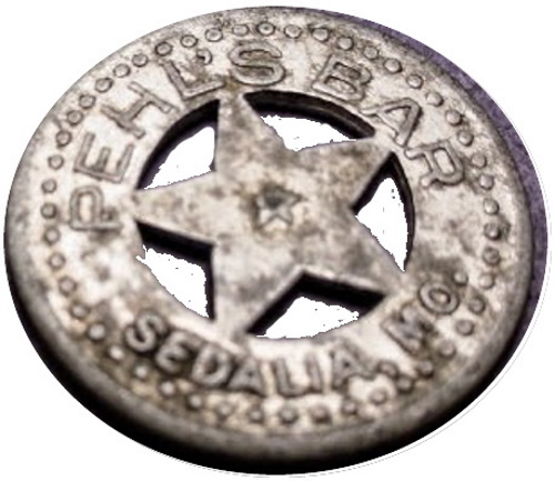 - Image – Pehls Bar token – Show Me The History – Johnson County and West Central Missouri – https://1973whsreunion.blogspot.com/2014/04/sedalia-missouri-history-photos-pettis.html