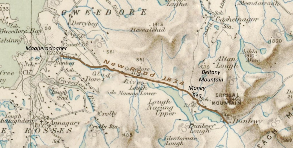 - Map – Ordnance map Dunlewey to Gweedore River – 1837-1842 – National Historic Maps – https://geohive.maps.arcgis.com/apps/dashboards/8c489155089e4c1ba128c2a2ae9b8cf2