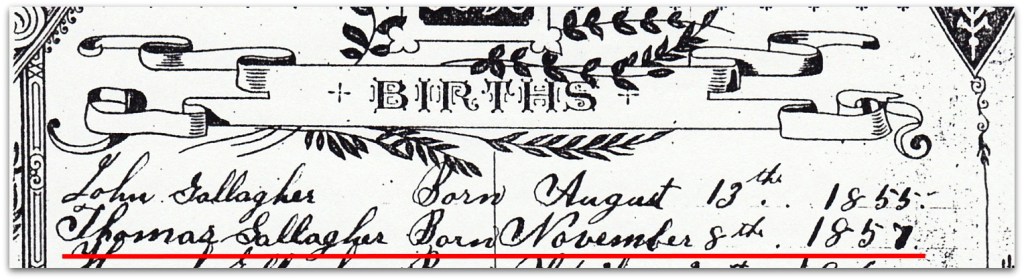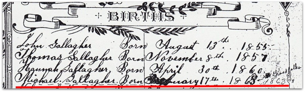 - Birth – Thomas Gallagher, Hannah Gallagher, Michael Gallagher – Gallagher Family Bible