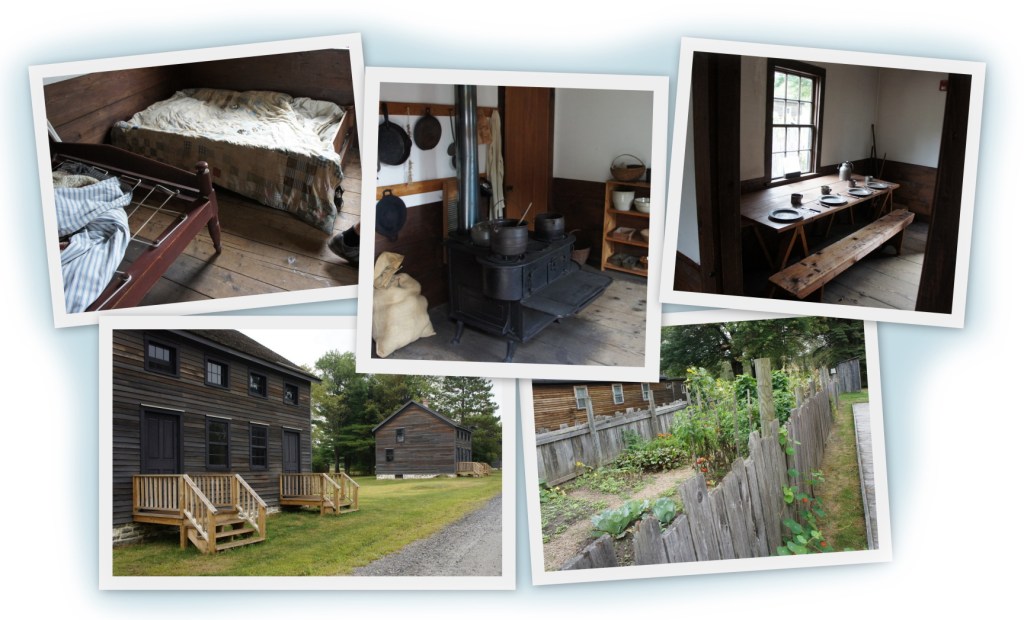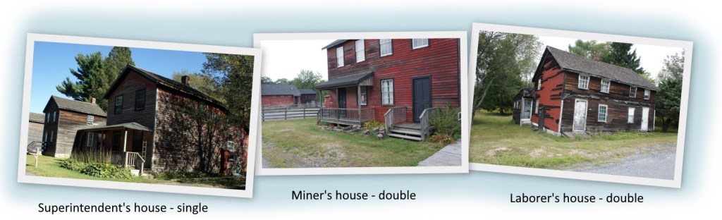 Laborers lived in 1-1/2 story double houses. They were wood framed, but not insulated or finished inside. The floors were wood or dirt. There were two rooms on the main floor and a loft upstairs.