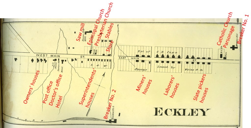 - Map – Town of Eckley – 1873 Atlas of Luzerne County Pennsylvania – Historic Map Works – http://www.historicmapworks.com/Map/US/14755/Jeddo+Borough++Eckley/Luzerne+County+1873/Pennsylvania/