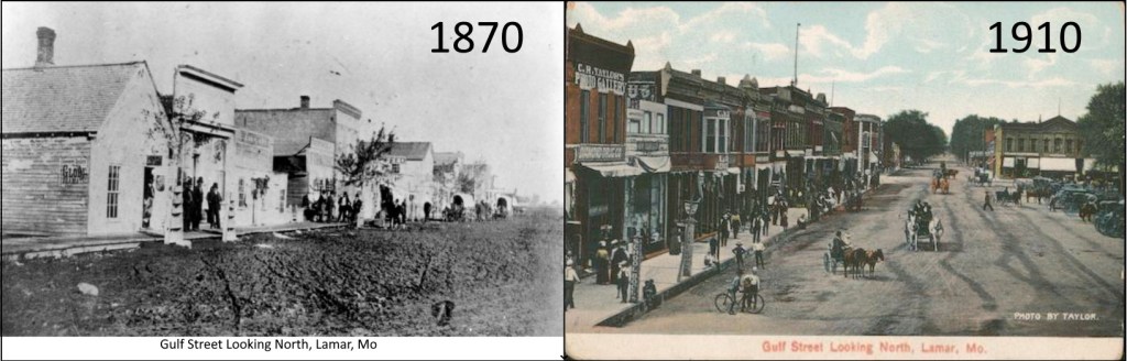 In 1910, the Gallaghers had been in Lamar and Barton County for 40 years. These photos of Gulf Street, on the west side of courthouse square, show the remarkable difference those 40 years had made.